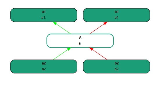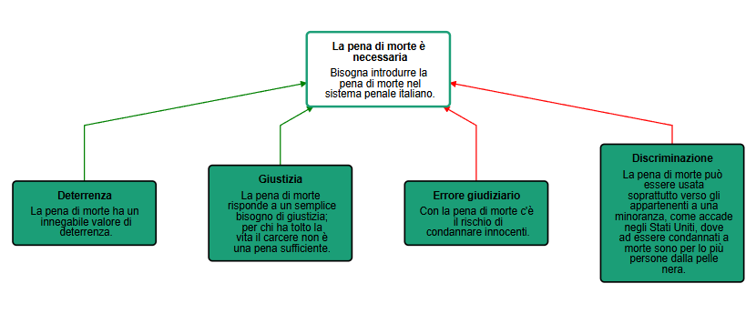 Come si vede, gli argomenti a favore della dichiarazione sono collegati ad essa da linee verdi che terminano con una freccia, mentre quelli contrari sono collegati da linee rosse.